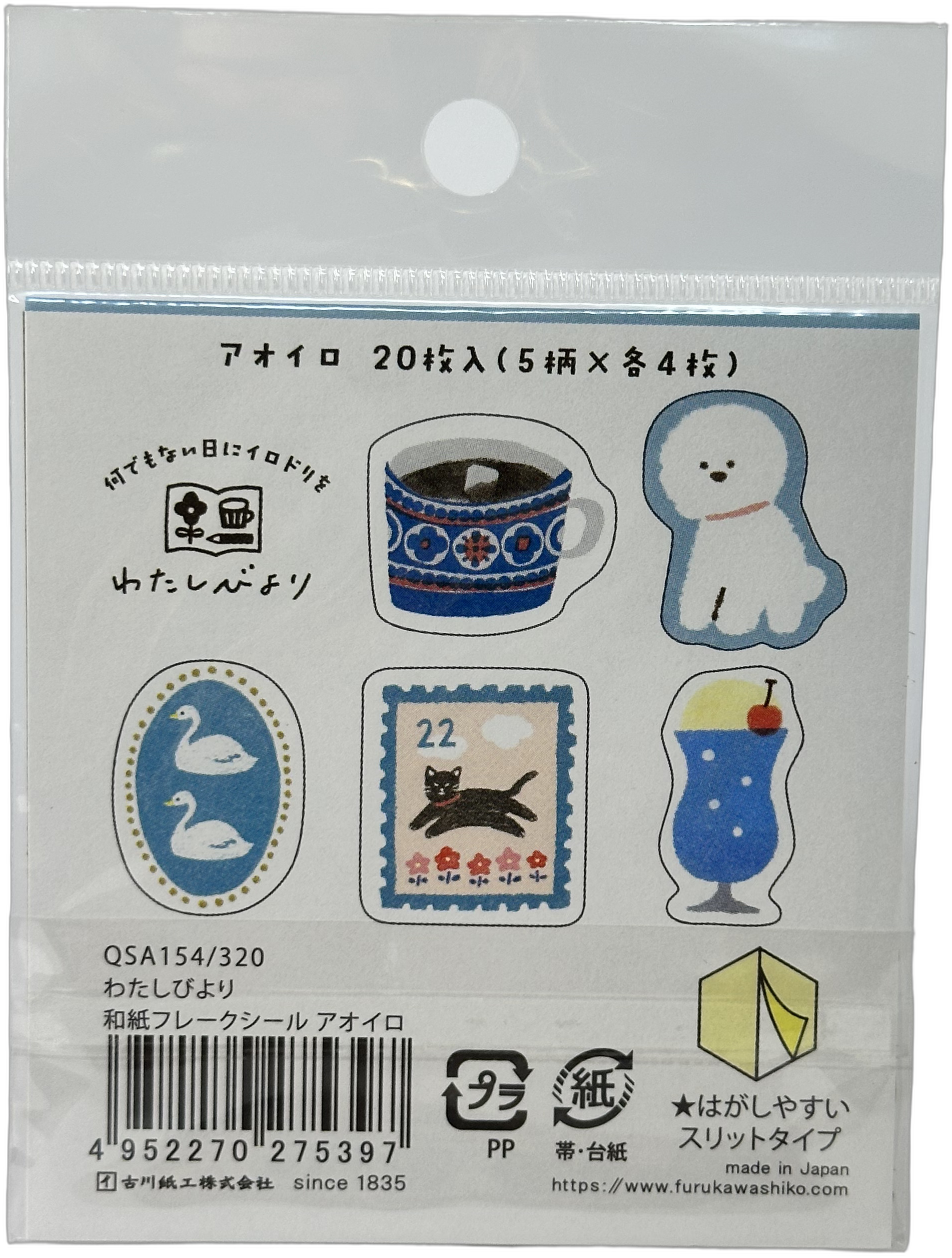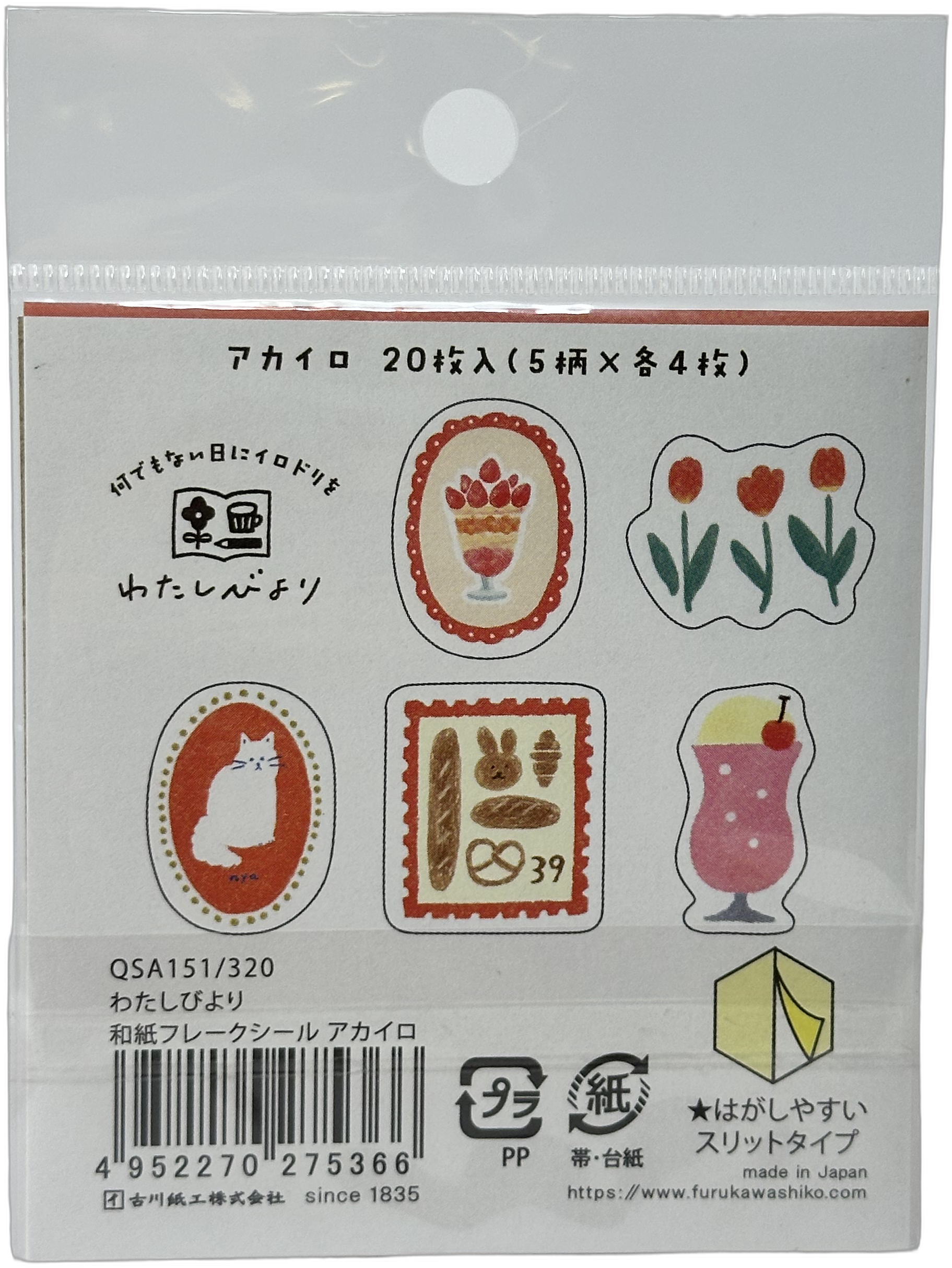 Furukawa Kawaii Retro Cat/Dog Washi Flake Stickers (20)
