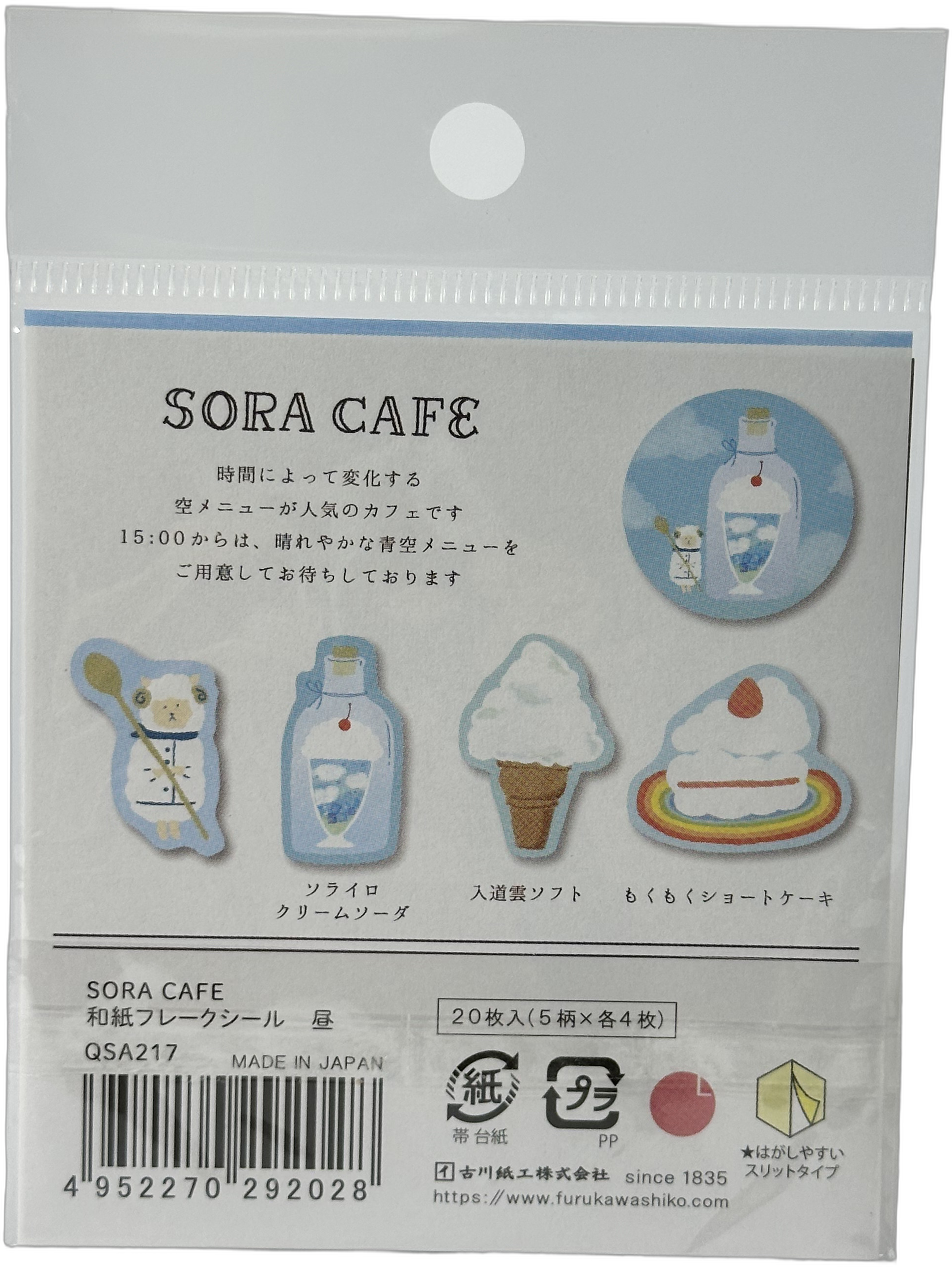 Craving something cute? These Sora Cafe Flake Seals are just the thing! Adorable sheep chefs, dreamy bottled drinks, and ice cream clouds await. Warning: May cause excessive adorableness on your stationery! Have fun collecting the whole set!