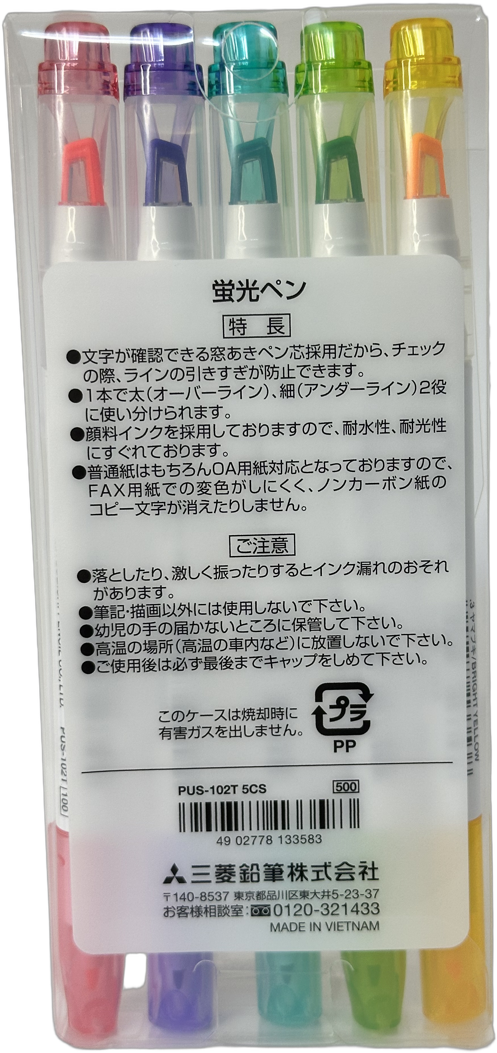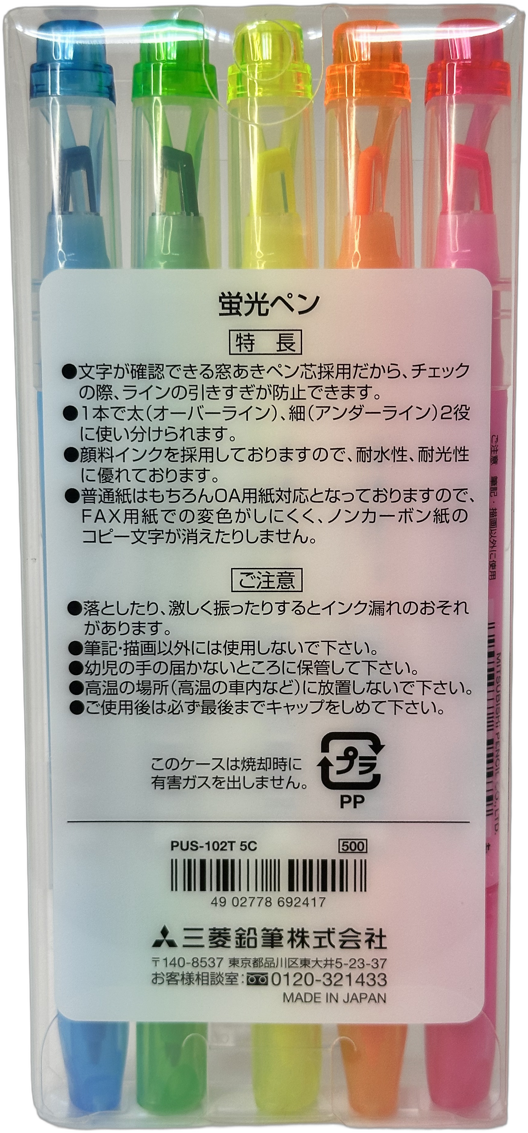 Uni Double-ended Propus Window Highlighter Set — 5 Colours